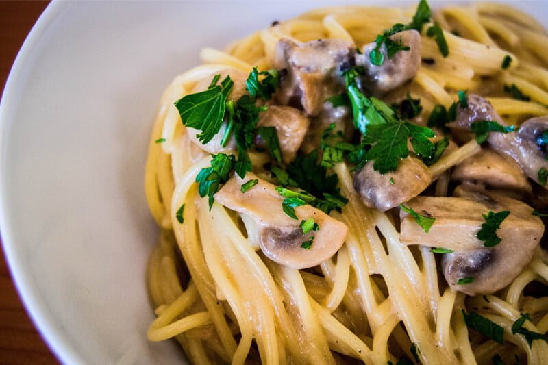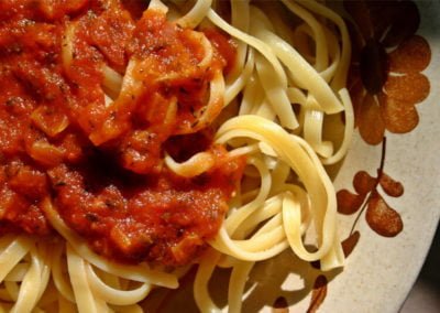 - Pasta with tomato/mushroom sauce